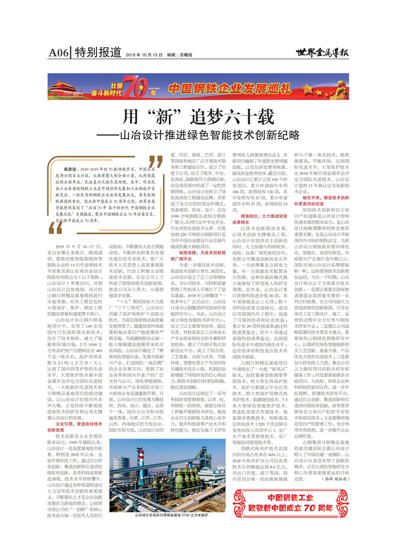 用“新”追夢六十載——山東省冶金設(shè)計院股份有限公司推進(jìn)綠色智能技術(shù)創(chuàng)新戰(zhàn)略