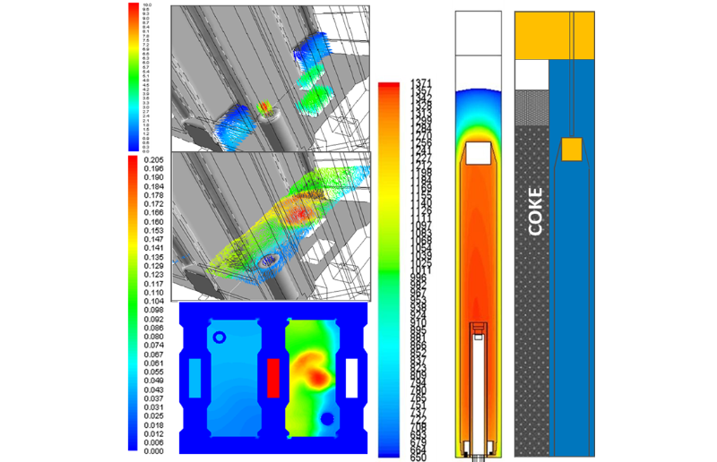 采用FAN火焰分析模型,模擬焦?fàn)t燃燒室燃燒狀況,優(yōu)化焦?fàn)t爐體及加熱系統(tǒng)設(shè)計,保證爐體高向加熱均勻性,降低煉焦耗熱量,減少氮氧化物和上升管根部石墨的產(chǎn)生。